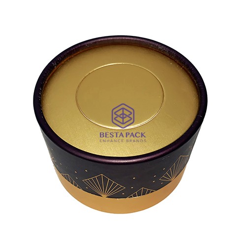 Paper tube box with curled edges, neck glued in the base, built-in spacer to create a cabinet for powder product,